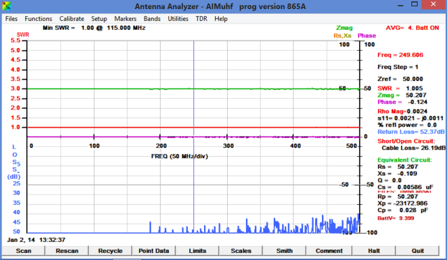 After doing the Standard Calibration, I did a scan of the 50 ohm cal resistor up to 500 MHz.